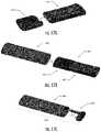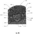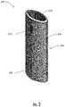 As shown in the figures, theliquid transport element516 is disposed within thebase member514 and extends between the liquid composition in thereservoir cavity528 and the heating member518 (see alsoFIG. 20). In the depicted implementation, theliquid transport element516 is formed of a cotton material and, when installed in thecartridge500, has a curved shape. In other implementations, however, theliquid transport element516 may have other shapes and may be formed of a variety of materials configured for transport of a liquid, such as by capillary action. For example, in some implementations the liquid transport element may be formed of fibrous materials (e.g., organic cotton, cellulose acetate, regenerated cellulose fabrics, glass fibers), porous ceramics, porous carbon, graphite, porous glass, sintered glass beads, sintered ceramic beads, capillary tubes, or the like. In other implementations, the liquid transport element may be any material that contains an open pore network (i.e., a plurality of pores that are interconnected so that fluid may flow from one pore to another in a plurality of direction through the element). As further discussed herein, some implementations of the present disclosure may particularly relate to the use of non-fibrous transport elements. As such, fibrous transport elements may be expressly excluded. Alternatively, combinations of fibrous transport elements and non-fibrous transport elements may be utilized. Representative types of substrates, reservoirs or other components for supporting the aerosol precursor are described in U.S. Pat. No. 8,528,569 to Newton; U.S. Pat. App. Pub. Nos. 2014/0261487 to Chapman et al. and 2014/0059780 to Davis et al.; and U.S. Pat. App. Pub. No. 2015/0216232 to Bless et al.; which are incorporated herein by reference in their entireties. Additionally, various wicking materials, and the configuration and operation of those wicking materials within certain types of electronic cigarettes, are set forth in U.S. Pat. No. 8,910,640 to Sears et al.; which is incorporated herein by reference in its entirety. In some implementations, the liquid transport element may be formed partially or completely from a porous monolith, such as a porous ceramic, a porous glass, or the like. Example monolithic materials suitable for use according to embodiments of the present disclosure are described, for example, in U.S. patent application Ser. No. 14/988,109, filed Jan. 5, 2016, and US Pat. No. 2014/0123989 to LaMothe, the disclosures of which are incorporated herein by reference in their entireties.