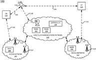 As illustrated in the example ofFIG. 1,UEs124 and126 may communicate withsatellite130 viasatellite links132 and134, respectively. In another example,UEs124 and126 may be limited to receiving low-bandwidth downlink communications. For instance,UEs124 and126 may include GPS receivers for receiving GPS broadcasts fromsatellite130. In one example,satellite130 may communicate with aground station136 viasatellite link138. In one example,satellite130 may be controlled and/or operated by a same network service provider ascore telecommunications network110. In another example,satellite130 may be controlled and/or operated by a different entity and may carry communications betweenUEs124 and126 andcore telecommunications network110.