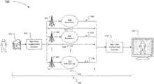 The Buffer Management andTransport Controller34 receives messages fromRF modules22,24 and26. TheRF modules22,24 and26 can return messages from an InformationFrame Re-assembly module28, via theWireless Transport Controller30, from theWireless Transport Controller30, and from interactions with one ormore Wireless Networks16,18 throughbase stations40 that are within a coverage region.