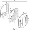 FIG. 3 is an exploded view oftrap portion114 ofinsect trap110.Trap portion114 includes adivider134 which may have afront surface138, and arear housing140. In some embodiments,divider134 is constructed from or includes a transparent or translucent material and may be coated with a transparent ortranslucent adhesive136 onfront surface138.Adhesive136 is shown partly cut away in this view. In some embodiments,divider134 is configured to polarize light transmitted through it in an orientation similar to that of daylight to further attract flying insects, a wide variety of which are known to detect polarized light. In some embodiments, the material and thickness ofdivider134 and the material and thickness of adhesive136 are selected to transmit a substantial proportion of the UV and/or visible and/or IR light, for example greater than 60% of the light is transmitted throughdivider134 and adhesive136. In some embodiments,rear housing140 includes a reflective-coated insidesurface142. Alternatively, the material and surface finish ofrear housing140 may be configured to reflect and disperse UV and/or visible and/or IR light without a reflective coating.Rear housing140 may include anopening144 on itsbottom surface166, or alternatively opening144 may be replaced by a transparent or translucent window (not shown).