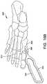 In some embodiments, thehead8 includes acutout20 sized and configured to interface with a portion of an anatomical structure, such as, for example, one or more bones of the foot. Thecutout20 and the edges of thehead8 define one ormore tines20a,20b. Thecutout20 is sized and configured to allow thetines20a,20bto be positioned on opposite sides of the anatomical structure. For example, in some embodiments, thecutout20 is sized and configured to receive a metatarsal and/or one or more additional toe bones therein to position thetines20a,20bon opposite sides of the metatarsal.