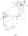 One end of thefirst cantilever53 is rotatably connected to thevertical column52 through a slidinglocking shaft56, and the other end of thefirst cantilever53 is rotatably connected to one end of thesecond cantilever54. The slidinglocking shaft56 is configured to have acylindrical shaft561 and acylindrical shaft562 protruding radially (ie laterally) from the sidewall of thecylindrical shaft561. Thecylindrical shaft561 is disposed on thevertical column52 and can slide up and down along thevertical column52. Through such a structure, thefirst cantilever53 is rotatably connected to thevertical column52, that is, thefirst cantilever53 together with thesecond cantilever54 and theclamping unit55 thereon can rotate around thevertical column52 as a whole. Thefirst cantilever53 is an arm part extending in the horizontal direction. Thesecond cantilever54 is an arm part extending in an angled direction as compared to thefirst cantilever53.