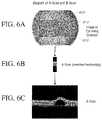 FIGS. 6A-6C are schematic diagrams illustrating the use of optical coherence tomography to scan retinal tissue to generate A-scans and B-scans.