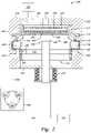 In the raisedposition200, thelift mechanism134 raises thesubstrate support140 to a height, h, within theinterior volume108 of theprocessing chamber100. The height may be, for example, such that there is about a 2 mm radial gap between thetop liner132 and thesubstrate support140, and about a 5 mm gap between the isolator112 and thesubstrate support140. A substrate (not shown) is positioned on thesubstrate support140 at a vertical height such that the slits line up along the side of the substrate. The bottom of the substrate lies below the top surface of the top liner to prevent any flow of the process gases below thepedestal assembly120. During processing, thecontroller202 communicates with theprocessing chamber100 to flow a process gas from aprocess gas source203 into theinterior volume108 of theprocessing chamber100 for depositing a material on asubstrate126. The deposited material may be a dielectric material, such as a silicon based dielectric material. Thegas distribution assembly110 provides the process gas to theinterior volume108. The process gas may be, for example, TEOS. To aid in keeping the lower region of theprocessing chamber100 clean, a purge gas may be flowed through theinterior volume108 of theprocessing chamber100 from below thepedestal assembly120. The purge gas is introduced by aseparate gas line210 through thebottom124 of theprocessing chamber100. The purge gas helps minimize undesirable deposition on theside walls122 of theprocessing chamber100 and the area of theprocessing chamber100 below thepedestal assembly120. The purge gas may be an inert gas, such as, for example, nitrogen, or argon.