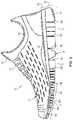 As shown inFIGS.3A and3B, themidsole32 may generally be divided into an upper connectingportion40 and alower siped portion50. The connectingportion40 includes both anupper surface41 and an oppositelower surface42. Theupper surface41 is positioned adjacent to upper20 and may be secured directly to upper20, thereby providing support for the foot. Theupper surface41 may, therefore, be contoured to conform to the natural, anatomical shape of the foot. Accordingly, theupper surface41 may form an arch support area inmidfoot region12, and peripheral areas ofupper surface41 may be generally cupped upward to provide a concavity for receiving and seating the foot. In other embodiments,upper surface41 may instead have a non-contoured configuration.