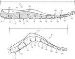 The shape of eachsole element51, as discussed above, is determined by the positions of thevarious sipes52a-52l, which are incisions or spaces that extend upward intomidsole32 and extend between thesole elements51. Thevarious sipes52a-52lalso increase the flexibility ofsole structure30 by forming an articulated configuration inmidsole32. Whereas the conventional footwear midsole is a unitary element of polymer foam, thesipes52a-52lin the present design form flexion lines in thesole structure30 and, therefore, have an effect upon the directions of flex inmidsole32. The manner in which thesole structure30 may flex or articulate as a result of thesipes52a-52lis graphically depicted inFIGS.5-6.