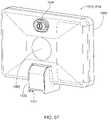 Referring toFIGS.56-58, thedisplay1512 is similar in construction and function to the displays of the endoscopic devices discussed above. Accordingly, thedisplay1512 includes ahousing1580, ascreen1582, apower button1584 located along an upper rear surface of thedisplay1512,internal electronics1586, an electrical connector1588 (e.g., a micro HDMI connector or another type of connector) that mates with theconnection port1560 of theconnection hub1508 to relay signals between theimaging system1504 and theinternal electronics1586, and around metal plate1590. Themetal plate1590 is designed to be supported by or otherwise interface with a magnet and/or a flexible accessory arm when thedisplay1512 is decoupled from the single-use portion1516 of theendoscopic device1500.