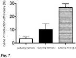 FIG.9 depicts the gene introduction rate by each culturing method (average±standard error). N=9. Significant differences are found between the novel methods (culturing methods 2 and 3) and the prior art method (culturing method 1). Additionally,culturing method 3 had a significantly higher gene introduction rate than culturingmethod 2.