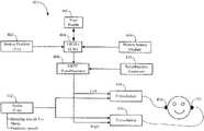 Theleft ear device302 includes amicrophone304, which can be a single or multiple microphones (e.g., a microphone array). Themicrophone304 is coupled to apreamplifier306, the output of which is coupled to thefirst processor308. An audio output of thefirst processor308 is coupled to anamplifier310 which is coupled to aleft earphone312. Theright ear device342 includes amicrophone344, which can be a single or multiple microphones (e.g., a microphone array). Themicrophone344 is coupled to apreamplifier346, the output of which is coupled to thesecond processor348. An audio output of thesecond processor348 is coupled to anamplifier350 which is coupled to aright earphone352.