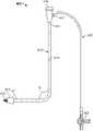 Tube410 may include one or more additional elements to prevent kinking and/or to allowtube410 to at least partially retain a curved configuration without a separate retainer device (e.g. particularly in exemplary embodiments in whichtube410 is a curvable tube). In an exemplary embodiment,tube410 includes a coiledwire419 in a polymer material of a wall. For example, a nitinol, stainless steel, or other suitable coil may be impregnated incurvable tube410 such thatcurvable tube410 is flexible and kink-resistant. In some embodiments, a metallic coil may allowcurvable tube410 to retain a curved configuration when bent or flexed.