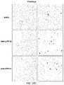 Example 5. In Vivo BBB Permeation ScreeningAAV.CPP.16 and AAV.CPP.21 were selected for further evaluation in an in vivo model, in experiments performed as described above for Example 2. All AAVs carried nuclear RFP as reporter. Both showed enhanced ability vs. AAV9 to transduce brain cells after intravenous administration in C57BL/6J adult mice (white dots in brain sections inFIG.5A, quantified inFIG.5B) and in BALB/c adult mice (white dots in brain sections inFIG.6A, quantified inFIG.6B).