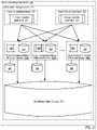 In some implementations, a primary controller, such asstorage array controller110A, may serve as the primary controller for one ormore storage arrays102A-B, and a second controller, such asstorage array controller110B, may serve as the secondary controller for the one ormore storage arrays102A-B. For example,storage array controller110A may be the primary controller forstorage array102A andstorage array102B, andstorage array controller110B may be the secondary controller forstorage array102A and102B. In some implementations,storage array controllers110C and110D (also referred to as “storage processing modules”) may neither have primary or secondary status.Storage array controllers110C and110D, implemented as storage processing modules, may act as a communication interface between the primary and secondary controllers (e.g.,storage array controllers110A and110B, respectively) andstorage array102B. For example,storage array controller110A ofstorage array102A may send a write request, viaSAN158, tostorage array102B. The write request may be received by bothstorage array controllers110C and110D ofstorage array102B.Storage array controllers110C and110D facilitate the communication, e.g., send the write request to the appropriate storage drive171A-F. It may be noted that in some implementations storage processing modules may be used to increase the number of storage drives controlled by the primary and secondary controllers.