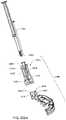 Referring now also toFIGS.245A-248, in practice, the fillingsyringe9062 is attached to the fillingaid9004 by pressing the fillingsyringe9062 through the opening of the fillingaid9004. The fillingneedle9014 cap may then be removed. Next, the fillingaid9004 is attached to a vial of fluid9080 by using the end tabs of the needle housing. The vial of fluid may contain e.g., therapeutic fluid, e.g., insulin. The fillingneedle9014 may penetrate theseptum9082 and the fluid may flow from thevial9080 to the fillingsyringe9062 by way of the fillingneedle9014. Once a desired volume of fluid flows from thevial9080 to the fillingsyringe9062, thevial9080 may be removed from theneedle housing9038, e.g., by exerting opposing force onto theneedle housing9038 and thevial9080 so as to disconnect the end tabs of theneedle housing9038 from thevial9080.