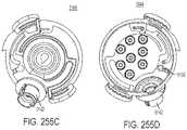 In the exemplary embodiment of this embodiment of thefill adapter9244, thefill adapter9244 includes a housing, thebutton assembly actuator9246 springingly attached to the housing. Thefill adapter9244 may include apump chamber plunger9250 shown in, for example,FIG.257C, on the underside of thefill adapter9244 housing. In various embodiments, thepump chamber plunger9250 may be actuated together with thebutton assemblies9248 via thebutton assembly actuator9246.