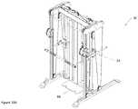 A similar or identical arrangement may be provided with regards to thefunctional training device31 located on the thirdvertical member26. The equivalent right side fourth functional device pulley77f(similar to the fourthfunctional device pulley77dlocated on the opposite side of the device10) may be connected to the sixteenth pulley70o. This arrangement may provide a connection between thefunctional training device31 located on the thirdvertical member26 to theresistance device58. This arrangement may also permit the vertical adjustment of thefunctional training device31 along the thirdvertical member26 while maintaining resistance on the equitant right sidethird cable75a.