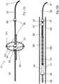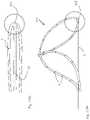 FIGS.123aand123bshow anotherbasket assembly951 of the invention with aproximal loop952 and adistal loop953.FIG.123bhas a cable or pulltether21 connected to the distal loop for actuation. Thedistal loop953 has a larger circumference thanproximal loop952, but in end view each loop will have substantially circular shapes to appose a vessel wall.