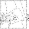 FIG.25 shows a surgeon manually removing the spinous process of the vertebra. A volume removal can be performed manually or with a surgical instrwnent. Additionally, a volume removal can be performed freely, guided only by the surgeon (i.e., without defining an operational volume). In the case of laminectomy procedures, the spinous process is not important and is not and is not near a sensitive part of the patient's anatomy, so manual removal is sufficient.FIGS.26-27 show a surgeon in the process of updating the model of the patient's anatomy by contacting the patient's anatomy in a plurality of points to generate a set of spatial coordinates. Because the set of spatial coordinates generated in the process shown inFIGS.26-27 will include spatial coordinates for points that were previously interior points of the patient's anatomy, the patient's anatomical model can be updated accordingly.FIG.28 shows the updated anatomical model with region of the model near the new surface highlighted in medium blue.FIG.29 shows a surgeon in the process of re-registering the patient. The surgeon can contact the patient's anatomy at any point. There is no need to contact the patient at a specific point in order for successful re-registration to occur. In the case of the exemplary method, the re-registration will be performed based on the model of the patient updated to reflect removal of the spinous process.FIGS.30 and31 show a navigational display viewed by the surgeon during the re-registration process. The surgeon can see the surgical instrument contacting the bone of the patient to provide an additional check that the registration is accurate. For example, if the surgeon was physically contacting the patient's anatomy with the surgical instrument but the navigation display was not showing the terminal point of the surgical instrument at the surface of the patient's anatomy, then the surgeon would know that re-registration was necessary before proceeding with the surgical method.