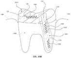 Continuing discussingFIG.30, in some embodiments, the orthodontic-elements may comprise the orthodontic-expander3000 and/or its components. In some embodiments, at least a portion of orthodontic-expander3000 may comprise one or more monitoring-sensor-tags120. In some embodiments, the one or more monitoring-sensor-tags120 may be attached to the at least the portion of orthodontic-expander3000. In some embodiments, at least a portion of orthodontic-band3001 may comprise one or more monitoring-sensor-tags120. In some embodiments, the one or more monitoring-sensor-tags120 may be attached to the at least the portion of orthodontic-band3001. In some embodiments, at least a portion of expander-arm3003 may comprise one or more monitoring-sensor-tags120. In some embodiments, the one or more monitoring-sensor-tags120 may be attached to the at least the portion of expander-arm3003. In some embodiments, at least a portion of force-generating-means3005 may comprise one or more monitoring-sensor-tags120. In some embodiments, the one or more monitoring-sensor-tags120 may be attached to the at least the portion of force-generating-means3005. The inclusion of such one or more monitoring-sensor-tags120 with orthodontic-expander3000 and/or its components, as shown inFIG.30 may permit the monitoring of forces acting onteeth1000 by orthodontic-expander3000 and/or its components.