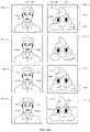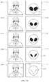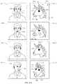 The images in the middle columns ofFIGS.26A-26D illustrate a reference avatar (e.g., dog avatar) that represents an appearance of a virtual avatar corresponding to detected images of the user located in the left column, for a hypothetical scenario in which the device continues to track the user's face for all movement in the left columns (e.g., face tracking does not fail). The reference avatar is shown from the perspective of a user viewing the reference avatar. In some embodiments, the images in the middle columns ofFIGS.26A-26D represent a position of the reference avatar within a display region of the display of the electronic device (e.g.,touch screen112,display340,display450, display504), and the borders of the images in the middle columns ofFIGS.26A-26D represent the boundaries of the display region that includes the reference avatar. In some embodiments, the display region represented in the middle columns corresponds to an avatar display region of an application user interface, such asvirtual avatar interface643,message composition area612, message area609 (or a portion thereof) discussed above.