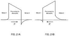 FIGS.21A and21B are schematic diagrams of electrostatic potential energy band profiles of ferroelectric tunnel junction devices of the first and second embodiments of the present disclosure.