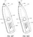 InFIG.31E, the flange holder/carriage3156 has moved the injection system/syringe3110 distally. At the same time, the plunger actuator/pusher3154 has moved the same distance distally to maintain contact with the thumb pad at the proximal end of theplunger member3116. Moving the injection system/syringe3110 distally extends theneedle3126 distally beyond thecollar3164, thereby exposing theneedle3126 for injection. Before the flange holder/carriage3156 moves the injection system/syringe3110 distally, theautoinjector system3100 may render an instruction on thedisplay3158 for the user to press the autoinjector against an injection site. In such embodiments, moving the injection system/syringe3110 distally may puncture the injection site.