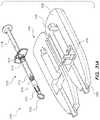 As shown inFIG.51, theanti-retraction mechanism3590 also includes fourfit tabs3596 configured to reduce a tolerance between thesecond recess3584 and theanti-retraction mechanism3590 thereby providing a tighter fit of theanti-retraction mechanism3590 in thesecond recess3584. The original tolerance is larger because, in some embodiments, thefinger flange3580 is molded from a polymer, and therefore has minimum size limitations for recesses that can be accurately and precisely formed therein. On the other hand, theanti-retraction mechanism3590 is cut from a sheet of metal, and therefore has a thinner profile then the height of thesecond recess3584. Thefit tabs3596 increase the thickness/height of theanti-retraction mechanism3590, thereby providing a tighter fit in thesecond recess3584. Thefit tabs3596 also provide rigidity to theanti-retraction mechanism3590. Accordingly, when theplunger member3516 is pulled proximally, the brake tabs3592 (because of their elasticity and angle) exert an outward force on theanti-retraction mechanism3590. This outward force is transferred through theanti-retraction mechanism3590 and thefit tabs3596 to push against the inside of thesecond recess3584 of thefinger flange3500 due to the rigidity of theanti-retraction mechanism3590. This outward force is the reactive force to the frictional and reaction forces applied to theplunger member3516 to prevent its proximal movement.
