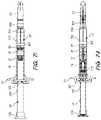 Further complicating the syringe marketplace is an increasing demand for prefilled syringe assemblies such as those depicted inFIGS.5A and5B, which generally comprise a syringe body, or “drug enclosure containment delivery system”, (34), a plunger tip, plug, or stopper (36), and a distal seal or cap (35) which may be fitted over a Luer type interface (FIG.5A shows thecap35 in place;FIG.5B has the cap removed to illustrate the Luer interface14). Liquid medicine may reside in the volume, or medicine reservoir, (40) between the distal seal and the distal end (37) of the plunger tip (36). The plunger tip (36) may comprise a standard butyl rubber material and may be coated, such as with a biocompatible lubricious coating (e.g., polytetrafluoroethylene (“PTFE”)), to facilitate preferred sealing and relative motion characteristics against the associated syringe body structure and material. The proximal end of the syringe body (34) inFIG.5B comprises a conventional integral syringe flange (38), which is formed integral to the material of the syringe body (34). The flange (38) is configured to extend radially from the syringe body (34) and may be configured to be a full circumference, or a partial circumference around the syringe body (34). A partial flange is known as a “clipped flange” while the other is known as a “full flange.” The flange is used to grasp the syringe with the fingers to provide support for pushing on the plunger to give the injection. The syringe body (34) preferably comprises a translucent material such as a glass or polymer. To form a contained volume within the chamber or reservoir (40), and to assist with expulsion of the associated fluid through the needle, a plunger tip (36) may be positioned within the syringe body (34). The syringe body (34) may define a substantially cylindrical shape (i.e., so that aplunger tip36 having a circular cross-sectional shape may establish a seal against the syringe body (34)), or be configured to have other cross-sectional shapes, such as an ellipse.