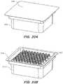 FIG.20C depicts therack1210′ removed from thecontainer1212 and onecartridge1410′ removed from therack1210′. Therack1210′ has a plurality of features (e.g., sleeves and/or flanges)1216′ to hold thecartridges1410′ in a first configuration in which the distal end of thecartridge1410′ is pointed in a generally downward direction (seeFIG.22A). In some embodiments, thefeatures1216′ are also configured to hold thecartridges1410′ in a second configuration in which the proximal end of thecartridge1410′ is pointed in a generally downward direction (seeFIG.22C).