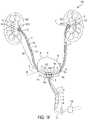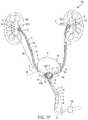 FIG.1U is a schematic drawing of an indwelling portion of a system comprising a ureteral catheter and a bladder catheter deployed in a urinary tract of a patient, according to an example of the present invention;