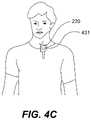 Apparatus110 may be attached to an article of clothing (e.g., a shirt, a belt, pants, etc.), ofuser100 at an edge of the clothing using aclip431 as shown inFIG.4C. For example, the body ofapparatus100 may reside adjacent to the inside surface of the clothing withclip431 engaging with the outside surface of the clothing. In such an embodiment, as shown inFIG.4C, the image sensor220 (e.g., a camera for visible light) may be protruding beyond the edge of the clothing. Alternatively,clip431 may be engaging with the inside surface of the clothing with the body ofapparatus110 being adjacent to the outside of the clothing. In various embodiments, the clothing may be positioned betweenclip431 and the body ofapparatus110.