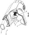 - b) a generally spherical air treatment member provided in the air flow path, the air treatment member having a volume defined by first and second opposed portions and third and fourth opposed portions, the first portion extends between one side of the third and fourth portions and the opposed second portion extends between another side of the third and fourth opposed portions, the air treatment member has an air treatment member air inlet positioned in the first portion, a first air outlet provided in the third portion, a second air outlet provided in the fourth portion, a first dirt outlet provided in the first portion wherein at least a portion of the first dirt outlet is positioned between the air treatment member air inlet and the third portion and a second dirt outlet wherein at least a portion of the second dirt outlet is positioned between the air treatment member air inlet and the fourth portion;