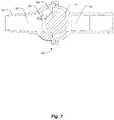 FIG.7 is a vertical section of the outlet ballcheck valve assembly120 of the embodiment ofFIG.1 wherein the pump-valving assembly101 is in a transition mode between the diastolic and systolic modes and theoutlet ball124 is in an unseated position.