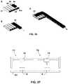 FIG.28 shows an example of joiner technology used to secure a foreign object.FIG.28A is a top view of a rectangular printed circuit board (PCB).FIG.28B is a side view of the same PCB in a cross-section cutaway, and a side cross-section of a 3D printed part that is adapted to receive the PCB.FIG.28C is a side view cross-section showing the 3D printed part with the PCB positioned in it.