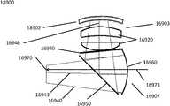 FIG.189 illustrates a see-throughoptical system18900 that includes a curvedOLED display panel18902. In this embodiment, theOLED panel18902 is curved in a convex manner with respect to the top lens surface oflens system16920. This creates a system where the OLED emission surface approximates the top curved surface of thelens system16920. This enables a system the distance between the OLED emission surface and the top of the lens is a constant, or approximating a similar distance over the OLED emission surface. The configuration may include a curved surface of the OLED and/or top lens surface do not approximate each other. For example, the curved surfaces may be similar but not the same, may be opposite, may be different, etc.