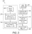 Further, using hand tracking250, collisions with a virtual object xiare detected260. The center of mass of collision points X=μ(xi) is calculated270. The method takes in the output from the offline component210 and projects haptic H[si] toX280. The method then returns to hand tracking250 and starts the process anew on an iterative basis.