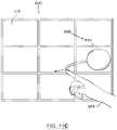 In one implementation, a spiraling logo occurs when a bubble is popped, such as via a selection technique. In one design, a three-dimensional icon of the application begins spiraling very rapidly about a vector from the lower left to the upper right as the icon moves from the lower left to the upper right toward the top right cell of the 3×3 grid and/or array. During the transition, in one implementation, the icon is gradually minimized to approximately a 1:10 icon-to-cell ratio (seeFIG.10B). This provides visual feedback about the state of theapparatus1300, in case a non-invasive application decides to remain open without having any items in the field of view (e.g., waiting for a person to come into the field of view), or in standby mode.
