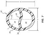Introduction of theelliptical catheter tube12 into theround introducer body62 forces the tubeouter wall16 to deform into the round shape of the introducer body. Because of the initially slackened state of theseptum58, thecatheter tube12 is able to be deformed from the elliptical to the circular shape when it passes into theround introducer body62. This causes the initially slackenedseptum58 to be stretched taut as theouter body16 of thecatheter tube12 is forced into the circular shape, as shown inFIG.8B, which shows thecatheter tube12 disposed within theintroducer body62. This enables thecatheter tube12 to be inserted into the patient's vessel, after which theintroducer60 can be removed from the vessel and the catheter tube resiliently returns to its elliptical aspect profile (FIG.7).
