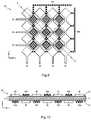 Alternatively, a thin dielectric layer (not shown) may overlie thefirst face13 of thefirst layer structure12 and the first andsecond electrodes23,24. Conductive regions (not shown) extending in the second direction y may be disposed over the dielectric layer (not shown), each conductive region (not shown) overlying thesecond pad segments36 making up onesecond electrode24. The overlying conductive regions (not shown) may connect thesecond pad segments36 making up eachsecond electrode24 using vias (not shown) formed through the dielectric layer (not shown).