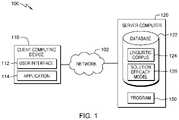 Solution efficacy model126, hereinafterSEM126, contains one or more models, containers, documents, sub-documents, matrices, vectors, and associated data, modeling one or more feature sets such as results from linguistic analysis, topic characterization/representations, and intra-arrival time of post frequency. In an embodiment,SEM126 contains one or more generative (e.g., latent Dirichlet allocation (LDA), etc.) or discriminative (e.g., support vector machine (SVM), etc.) statistical models utilized to categorize one or more communications. For example,SEM126 may train and utilize one or more generative statistical models to calculate the conditional probability of an observable X, given a target y, symbolically, P(X|Y=y) andSEM126 may train and utilize one or more discriminative models to calculate the conditional probability of the target Y, given an observation x, symbolically, P(Y|X=x).