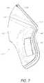 In one configuration, the paddles have a thickened cross-section along the ridge that joins the laterally outer portion and the laterally inner portion. Thus, thepaddles726 can have a thicker section at a radiused portion that joins the inner portion and the outer portion. In some configurations, that thickened region can be between about 0.3 mm and about 1.25 mm. In some configurations, that thickened region is about 0.5 mm or about 1.0 mm. That thickened region helps to reduce the likelihood of wrinkling or creasing of the face contacting portions of thepaddles726 during use while allowing the laterally inner portions to be as thin as desired.