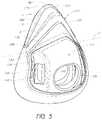 Between thepaddle region968 and theprongs927 is aflexible zone969. Theflexible zone969 preferably is formed along theinner portions933 of thepaddles926. In some configurations, theflexible zone969 is on each lateral side of theprongs927. In some configurations, theflexible zone969 extends on both lateral sides of theprongs927 and wraps around to a location generally forward of theprongs927. Theflexible zone969 overlies pockets defined within thepaddles926, which pockets are in fluid communication with thechamber925. As such, pressure from within thechamber925 can somewhat inflate, or cause bulging of, theflexible zones969 to improve sealing with the nose of the user. The flexible zones preferably have a thickness of less than about 0.5 mm. In some configurations, theinflation zones969 can have a thickness of between about 0.2 mm and about 0.7 mm. In the illustrated configuration, theinflation zones969 have a thickness of about 0.2 mm.