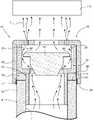 FIG.17 is an enlarged sectional view of the cap assembly according to the invention showing details of an evacuating operation used to form a lower pressure or vacuum within a bottle on which the cap assembly is installed.