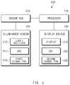 According to an embodiment, theprocessor120 may be configured to execute instructions stored in thememory130 to control theilluminance sensor330 and/or thesensor hub510 such that theilluminance sensor330 may acquire external light. Theprocessor120 may be further configured to execute the instructions stored in thememory130 to change the brightness of thedisplay210 of thedisplay device160. Theprocessor120 may receive information associated with the light that is acquired by theilluminance sensor330 through thesensor hub510. Theprocessor120 may determine the brightness or the luminance of the screen displayed by thedisplay210, based on the information associated with the light.