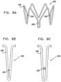 FIG.9A is a schematic, pictorial illustration of a constrictingring120, in accordance with an embodiment of the present invention. This ring may be used as a constricting element indevice20, taking the place ofelement30 shown in the preceding figures.Ring120 comprises a flexible,elastic wire122. For example,wire122 may comprise a super-elastic material, such as Nitinol.Wire122 is formed with multiple bends, typically in a serpentine pattern, as shown inFIG.9A. Some of the bends areclosed bends124, at which the wire segments on opposing sides of the bend are fixed together, thus narrowing the overall circumference ofring120. Whenring120 is installed in place ofelement30 ondevice20, the narrowed circumference of the ring constricts the diameter oflumen32, as shown inFIGS.1 and2.