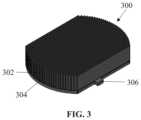 FIG.3 illustrates a plan view of theheatsink300, according to some embodiments. As used herein, theheatsink300 shown can be the same heatsink used inFIG.1E. Referring toFIG.3, theheatsink300 can include a component and/or material configured to draw heat away the TEC and/or other components of the component mounting system. In some embodiments, theheatsink300 includes a plurality offins302 extending from abase portion304 of theheatsink300. In some embodiments, the plurality offins302 can be formed through a skiving technique. In some embodiments, the plurality offins302 can be referred to as skived fins. In some embodiments, in contrast to using extrusion which is one way conventional heatsinks are formed, theentire heatsink300 can be formed using a skiving technique. In some embodiments, theheatsink300 can be referred to as a skived heatsink. In an example, a metal work skiving process can be used to formheatsink300 and/or the plurality offins302. As referred to herein the plurality offins302 can also be referred to individually, e.g., eachfin302 or as one ormore fins302. In some embodiments, theheatsink300 can include afirst tab306. In some embodiments, one or more tabs can be used. In some embodiments, the heatsink can include aluminum. In an example, the heatsink can include anodized aluminum. In some embodiments, the heatsink can include aluminum6063.