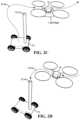 FIG.1J illustrates one embodiment of adrone10 operative to utilize multiple vehicles1-V,2-V together with temporary landing sites1-temp,2-temp and designated on-road stopping areas1-stop,2-stop,3-stop,4-stop, to move between different locations and arrive at a certain target destination1-target. In one embodiment, thedrone10 is required to get from one place1-start to another1-target, perhaps as a part of a package delivery mission, in which case the starting point1-start could be a warehouse storing a package and the target1-target is the place of delivery, or possibly as a part of a mission to survey surrounding environment1-GR-environment including a plurality of streets1-road-1,1-road-2, in which case the starting point1-start could be a place at which thedrone10 is currently located and the target1-target is the place at which thedrone10 is to be located at the end of the survey, e.g., for charging batteries. The target1-target could also be a place at which thedrone10 is needed for some reason. Now, thedrone10 could simply fly from the starting point1-start to the target location1-target, however, the distance could be too great for a non-stop flight, e.g., when1-start is located in one city and1-target is located in another city, or when thedrone10 is of a hovering type thus having a relatively short range, or when the mission calls for distance and duration that simply exceed capabilities of thedrone10, such as when the drone is required to survey city streets and to remain in-mission for many hours at a time, or when the drone is carrying a heavy load. In cases that a non-stop flight is not possible or not effective, the done10, and/or a planning agent (5-P,FIG.1A) associated therewith, may plan to utilize a plurality of vehicles to complete the mission. In one embodiment, each of the vehicles1-V,2-V (which may be a bus or another vehicle such as12-V,FIG.11A, or12,FIG.4B) is a part of a scheduled service, such as a bus service or a dedicated on-road transport service, in which, for example, vehicle1-V is servicing a first route that happens to include a first plurality of roads1-road-1, and vehicle2-V is servicing a second route that happens to include a second plurality of roads1-road-2. The done10 and/or the planning agent5-P may conclude that a combination of the first and second routes is needed to assist thedrone10 in getting from a current location1-start to a destination location1-target, and therefore, a plan is made to utilize both routes and associated vehicles1-V,2-V. According to the plan, thedrone10 executes a flight maneuver1-fly-T0 at time T0, so as to position the drone at a temporary landing site1-temp located in close proximity to a first designated stopping area1-stop (e.g., in close proximity to a first bus stop in the first route) at which vehicle1-V is scheduled to arrive and stop. At time T1, vehicle1-V arrives and stops1-arrival-T1 at the first designated stopping area1-stop, thereby allowing thedrone10 to embark1-fly-T1 on the vehicle, and catch a ride therewith, till arriving and stopping1-arrival-T2, at time T2, at a second designated stopping area2-stop (e.g., at a second bus stop in the first route), at which time the drone executes, according to the plan, another maneuver1-fly-T2 to disembark the vehicle1-V, and land on a second landing site2-temp that acts as a “waiting point” for the drone in conjunction with “changing busses” according to the plan (and not unlike a passengers1-ped changing transport routes). At time T3, vehicle2-V arrives and stops1-arrival-T3 at a third designated stopping area3-stop (e.g., a bus stop in the second route), thereby allowing thedrone10 to embark1-fly-T3 on the vehicle, and catch a ride therewith, till arriving and stopping1-arrival-T4, at time T4, at a another designated stopping area4-stop (e.g., at another bus stop in the second route), at which time the drone executes, according to the plan, a yet another maneuver1-fly-T4 to disembark the vehicle2-V, and reach destination1-target according to the plan.