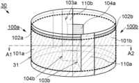 Adisplay region31 in thedisplay device30 is surrounded by a bold dashed line inFIG.1B. Thedisplay region31 corresponds to thedisplay region101aand thedisplay region101bwhich are seamlessly joined to form a ring; accordingly, seamless, ring-shaped images are displayed in thedisplay region31. When thedisplay device30 is applied to a pillar, for example, a viewer sees a seamless image at any angle to the pillar.