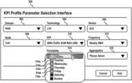 Network management platform101 processes the selected parameters (e.g., domain, technology, vendor, node, KPI, frequency, periodicity, and other suitable parameters) to generate a KPI management profile.