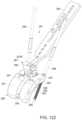 FIG.121 illustrates an elevational anterior perspective view of the second talar trial guide ofFIG.112 and a bone removal guide and bone cutting instrument engaged therewith, in accordance with an aspect of the present disclosure;