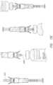 In some embodiments, as shown inFIGS.9D and9E, the knob C1106 and the body C1102 of one connector C1101 may be one piece (e.g., a molded, unitary piece). Alternatively, in some embodiments, as apparent inFIGS.9D-10A, the knob C1006, C2006, C2106 and the body C1002, C2002, C2102 of a connector C1001, C2001, C2101 may be separately molded pieces fixed together (e.g., using an adhesive, sonic welding, etc.). As shown inFIG.9E, the connector set can comprise either or both types of connectors (unitary or fixed together).